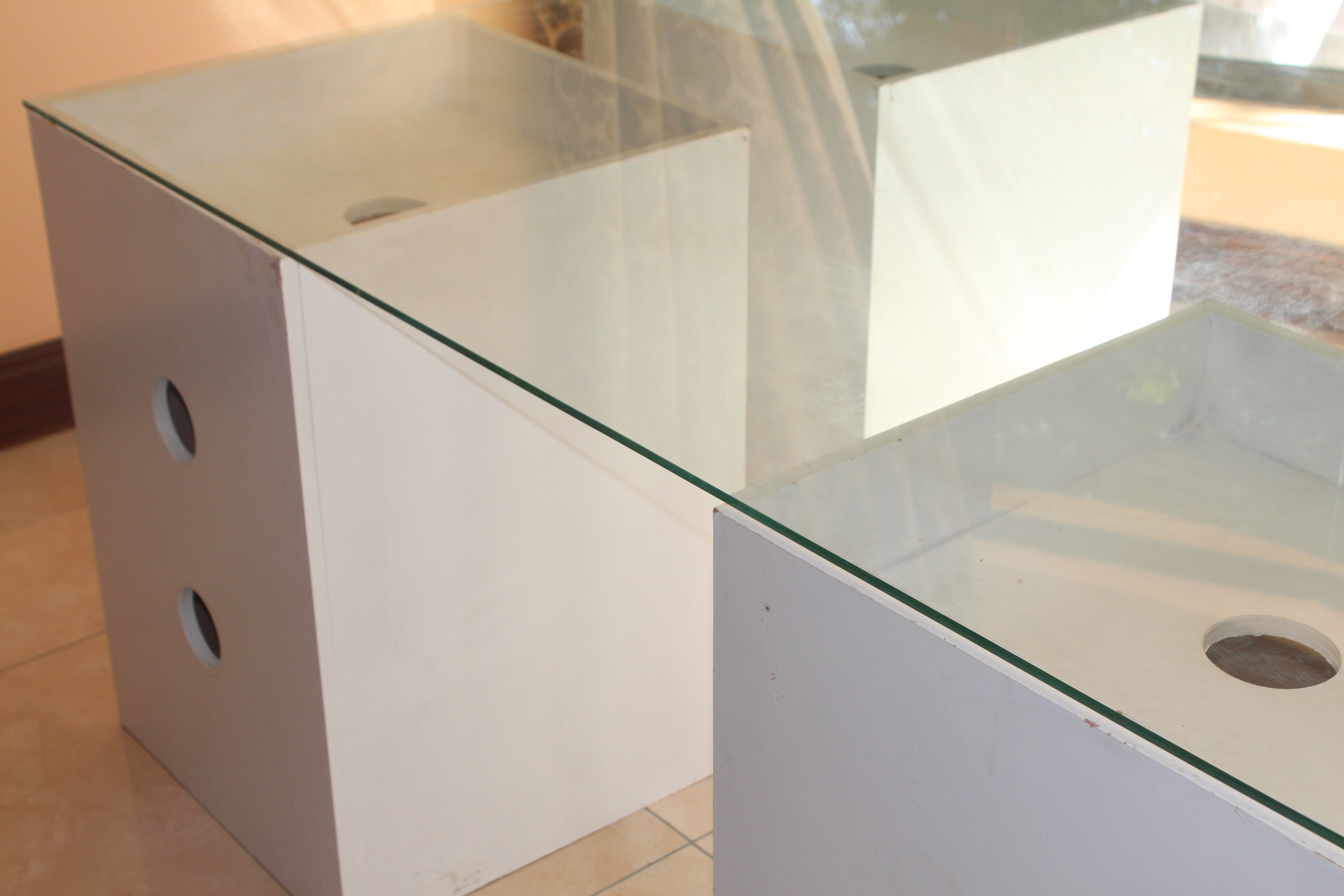 Our Glass tables have been custom made with the stands being cut from hand and carefully crafted to instil a retro yet slightly modernistic elegant feel that adds to the experience of viewing and pictures taken at any event with these tables present.